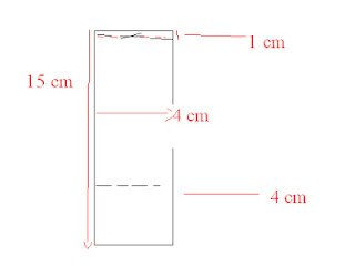 O comprimento é 15 cm e a largura é 4 cm. Depois a pontilhado, em cima é 1 cm e em baixo é 4 cm
